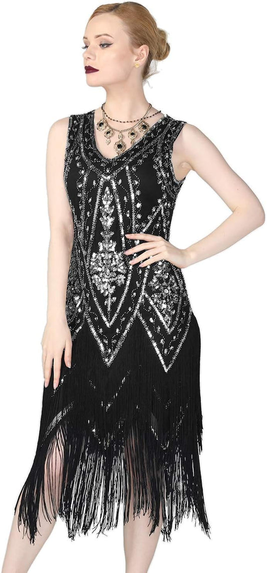 Women'S 1920S Flapper Dress Vintage Swing Fringed Gatsby Roaring 20S Dress